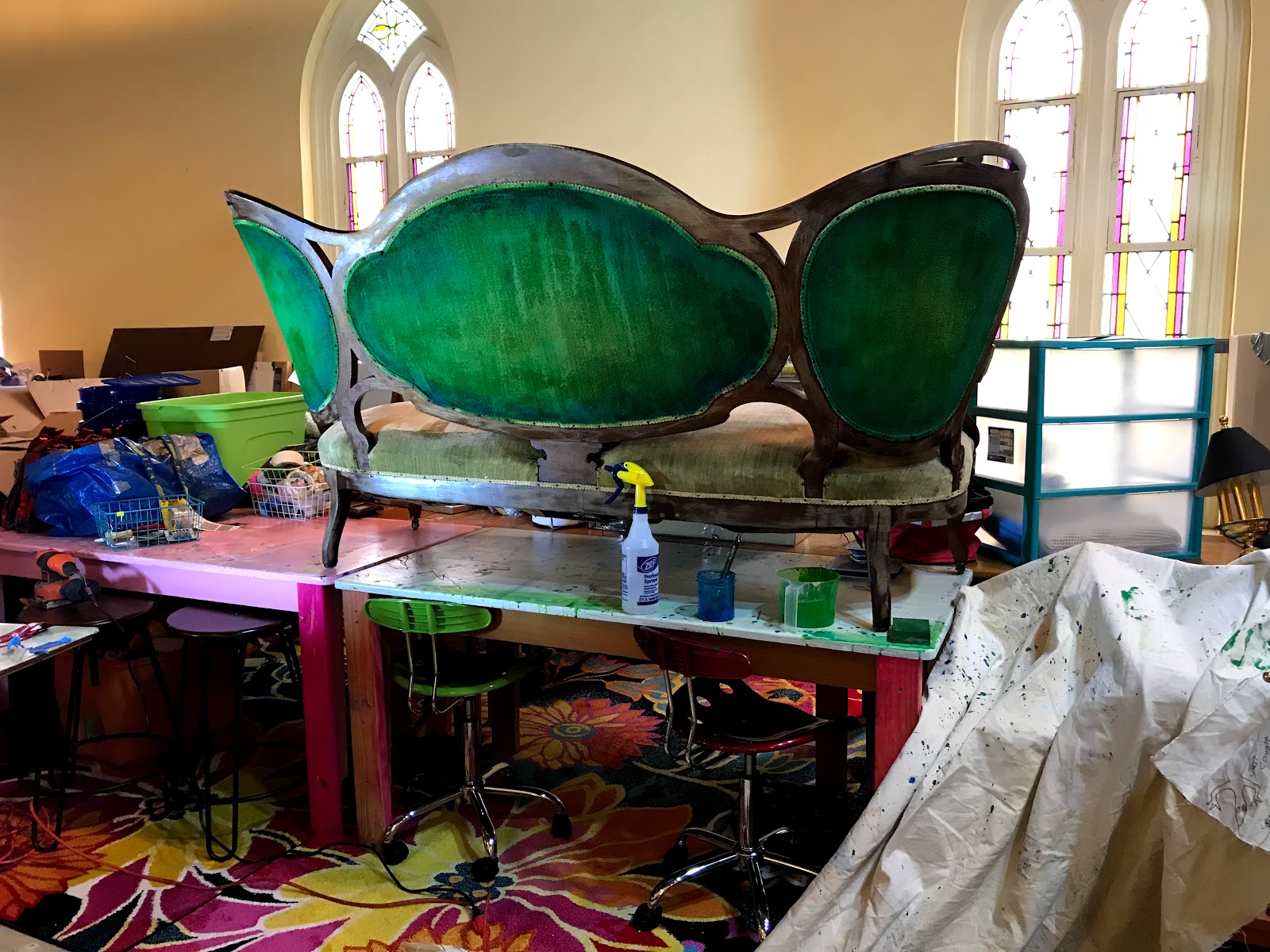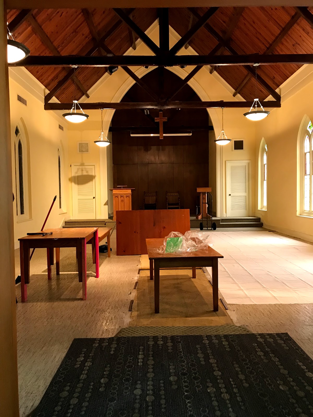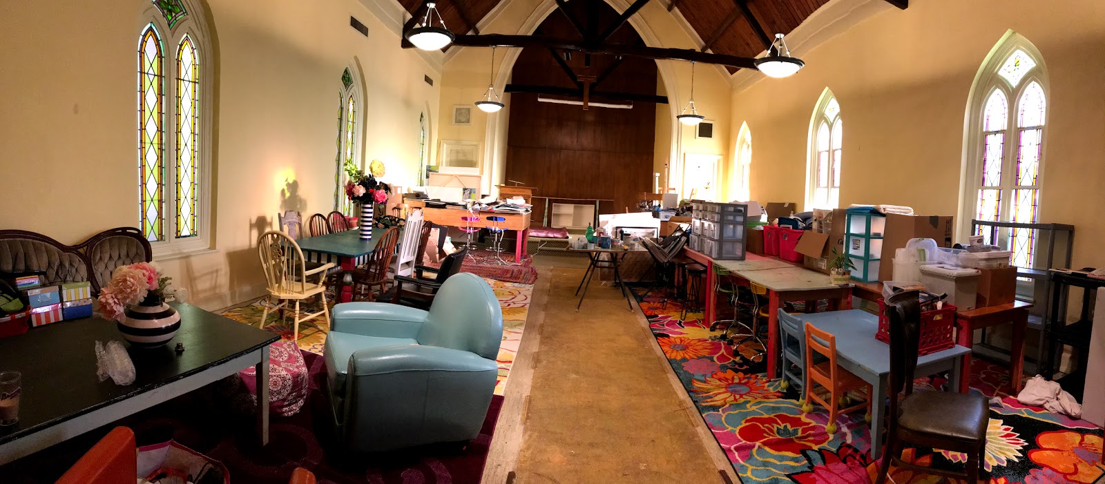 For most of the year my 1700 sq. ft. space upstairs was glorious! The natural light was so lovely, the space was perfect, and I began to expand my business because I finally had space. The only draw back was the stairs in this older building, and with no elevator, my orthopedic issues revealed that the space was not a long term option for me. Once again, doors opened, literally, and the chapel and a smaller space came open downstairs. My heart broke at the thought of moving again, but I knew it was going to be just fine.